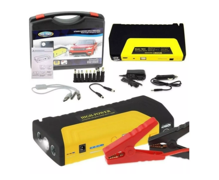 Para baterías de hasta 60 amperes Partidor - Arrancador de emergencia para autos PARA HACER PARTIR SU AUTO DEBES COLOCAR LA PINZAS ROJA(POSITIVÓ) COLOCAR EN EL BORNES POSITIVOS DE LA BATERÍA. LA PINZA NEGRA(NEGATIVO) COLOCARLO EN EL CHASIS DEL AUTO PARA QUE LE DÉ LA TIERRA QUE NECESITA. Partidor de Baterías para auto de 68800 mAh Funciona para vehículos de a partir de 12V. Batería de polímero de 68800 mAh, es la batería más rápida y efectiva del Mercado. Diseño ultra liviano que le permite llevarlo a todos los lugares y mantenerlo en el auto sin ocupar espacio. Incluye una Gran linterna ajustable para emergencias. También posee luces de emergencia en caso de quedar en Pana.